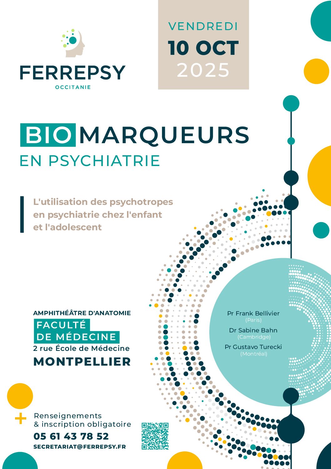Bio marqueurs en psychiatrie – 10 octobre 2025 (Faculté de médecine de Montpellier) – Affiche | © FERREPSY Occitanie