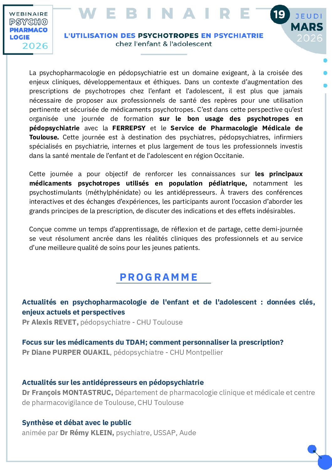 Webinaire – L’utilisation des psychotropes en psychiatrie chez l’enfant et l’adolescent